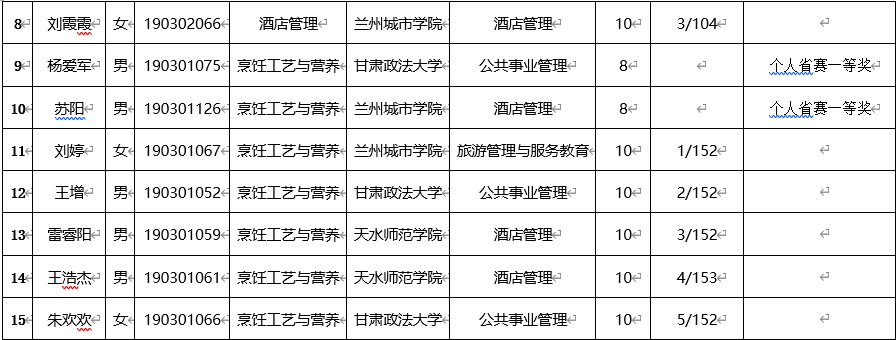 免试生类型:1代表全国职业院校技能大赛;2代表世界技能大赛;3代表中华人民共和国职业技能大赛;4代表全国大学生电子设计竞赛;5代表中国国际“互联网+”大学生创新创业大赛;6代表全国大学生数学建模竞赛;7代表全国大学生广告艺术大赛;8代表甘肃省职业院校学生技能大赛;9代表全国学生运动会个人竞赛;10代表专业综合测评排名前3%的应届毕业生;11在甘肃省应征入伍并取得退役证的学院应往届退役大学生士兵。