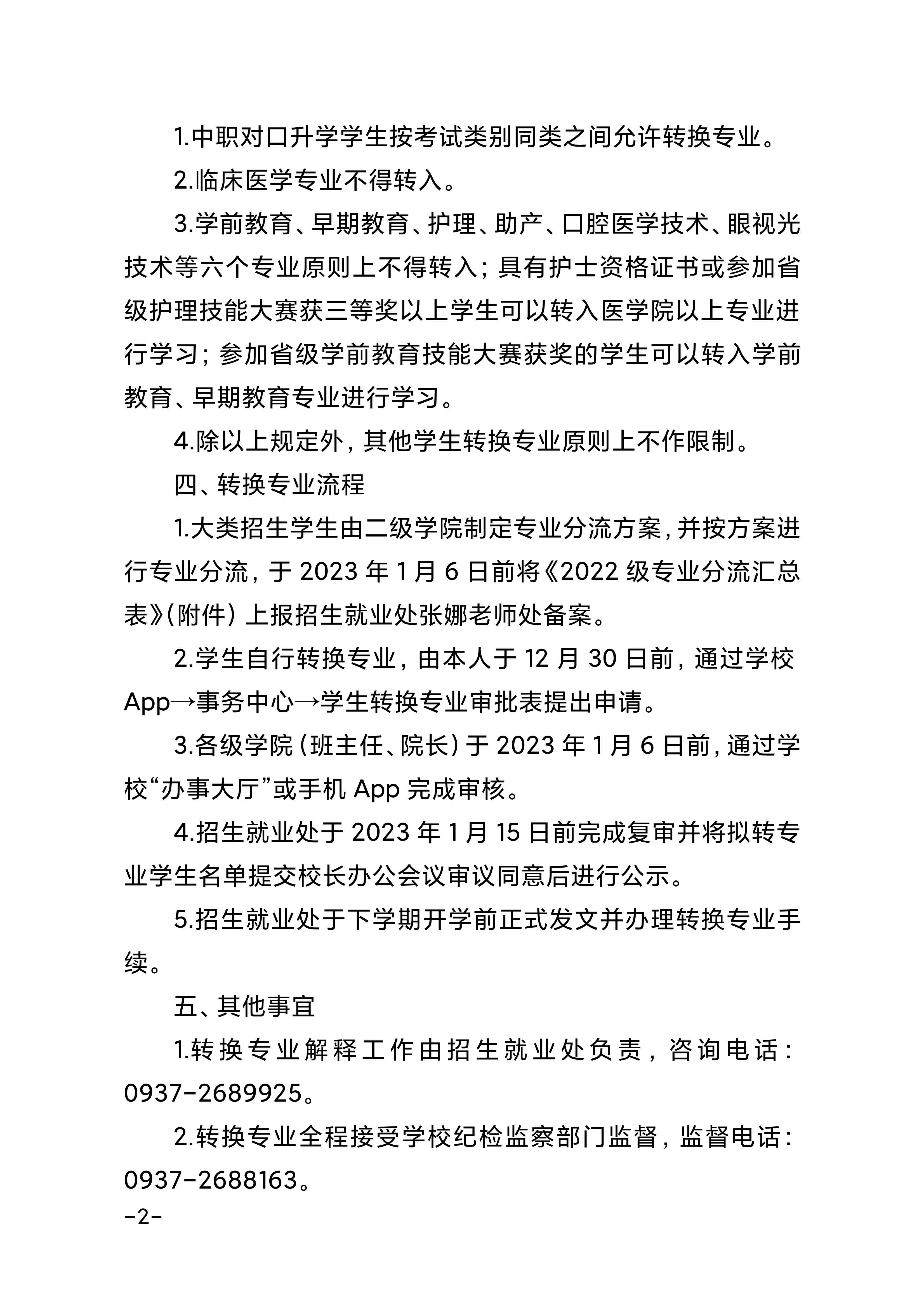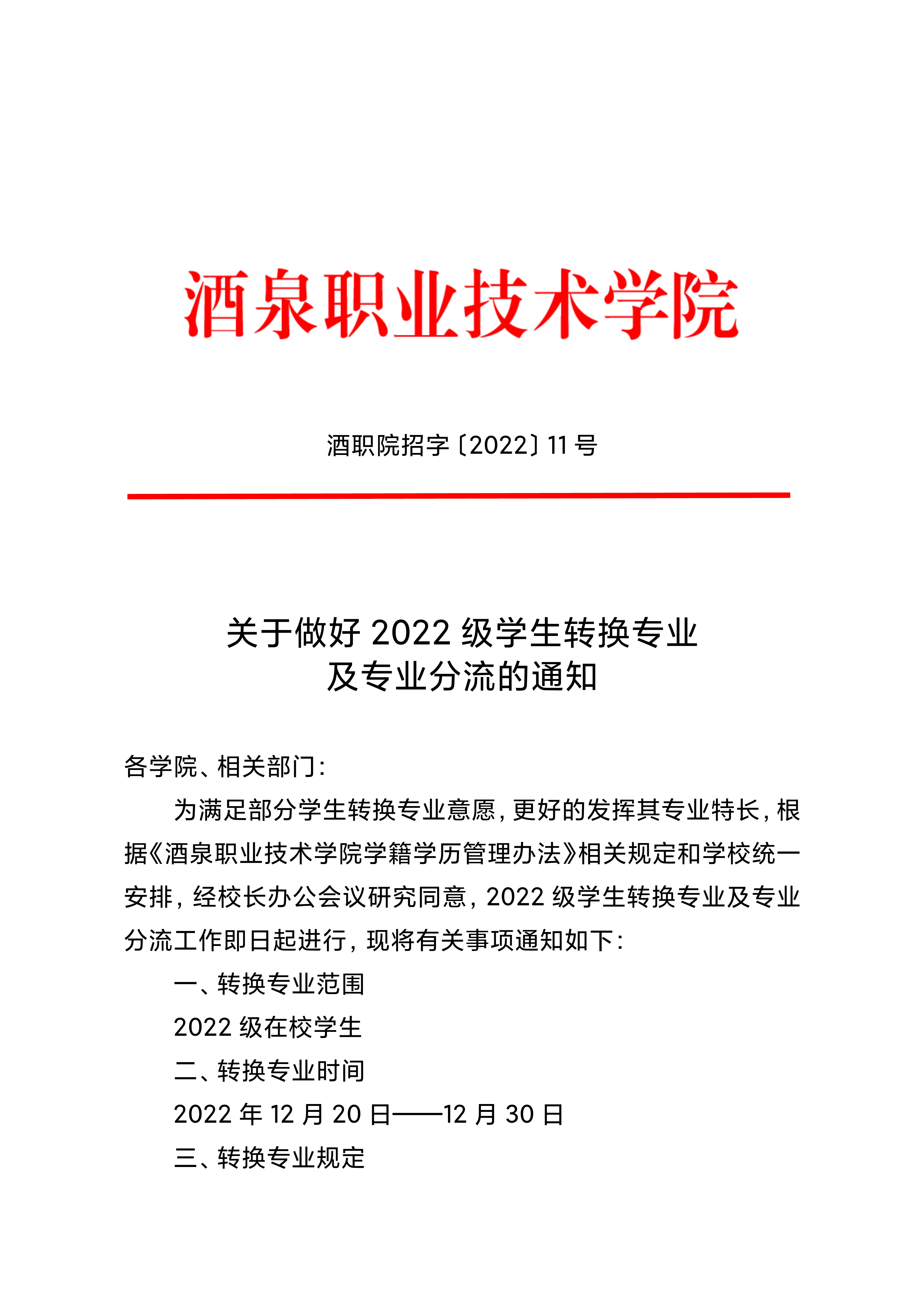 关于做好2022级学生转换专业及专业分流的通知