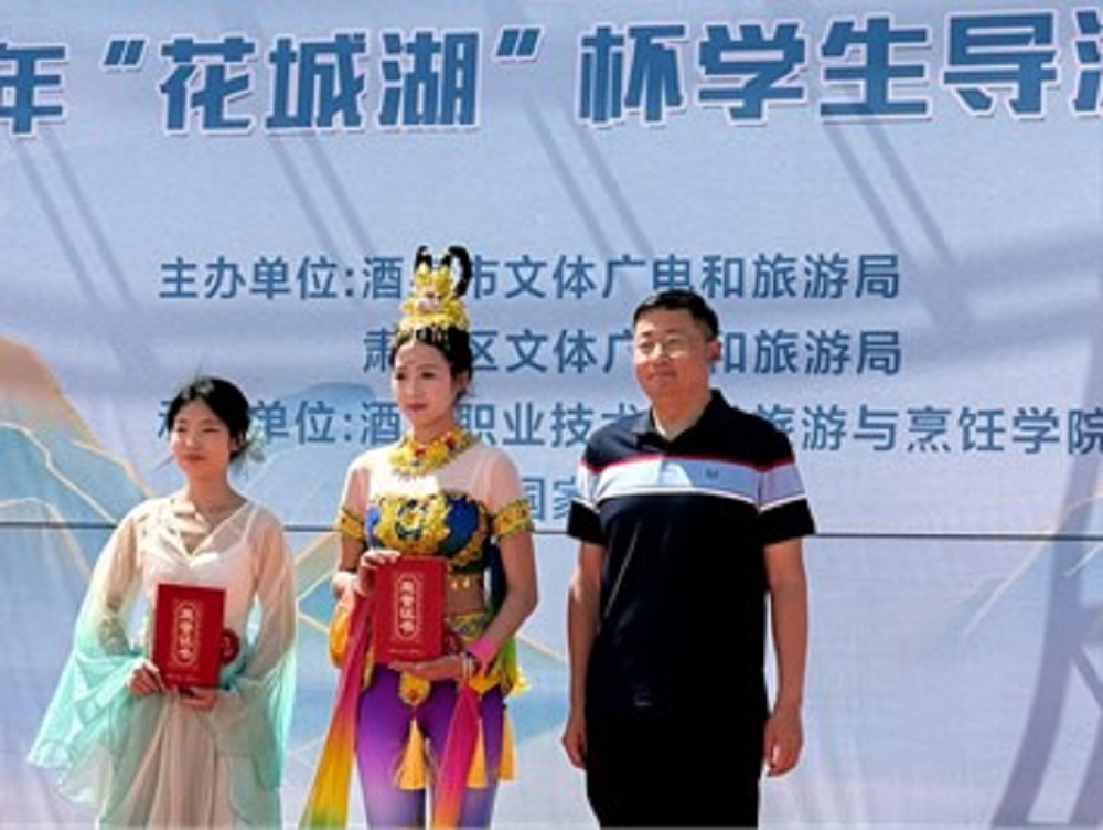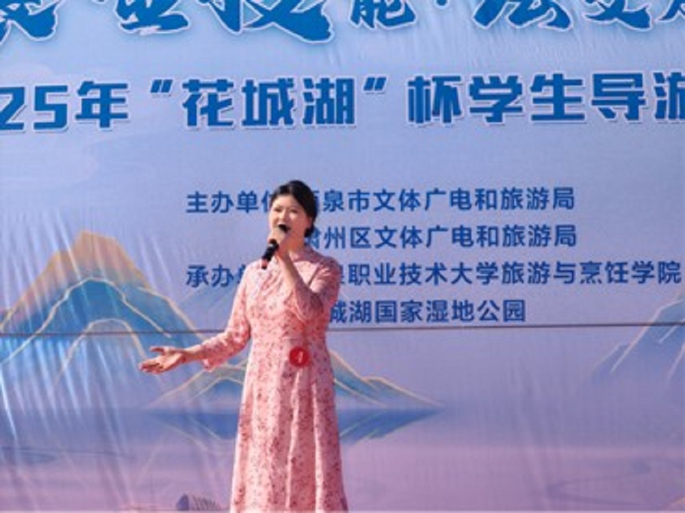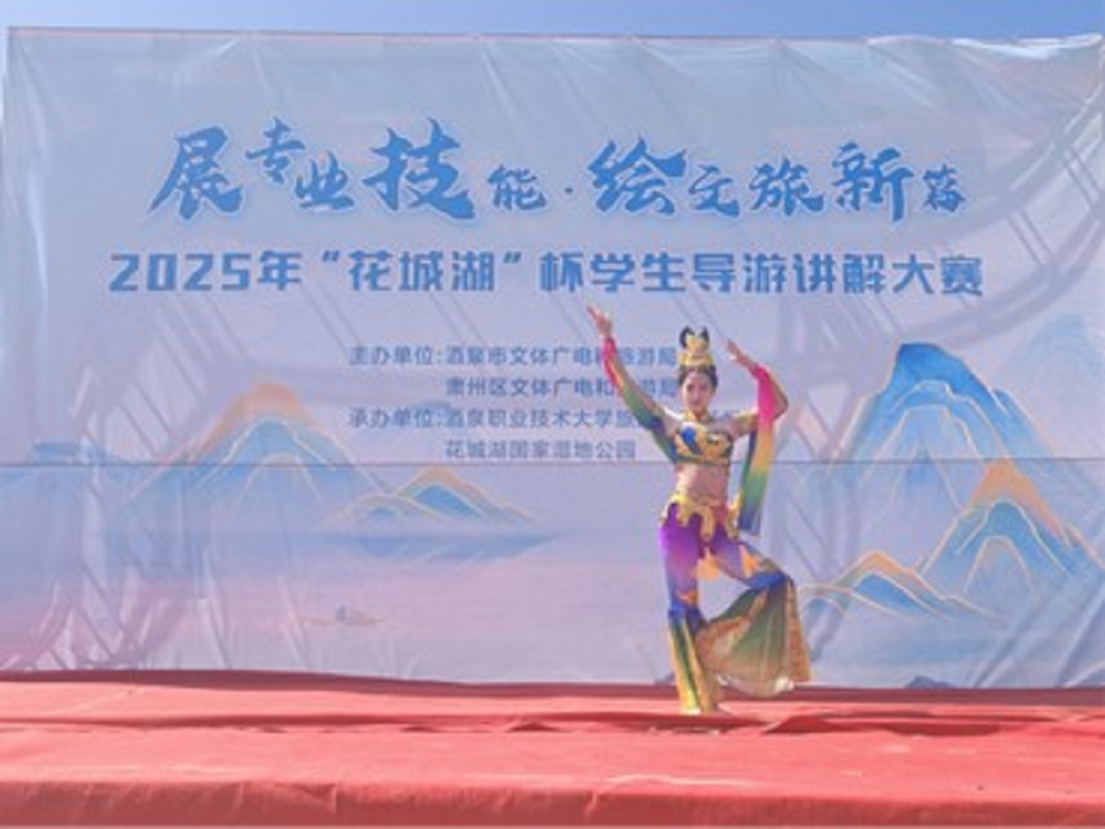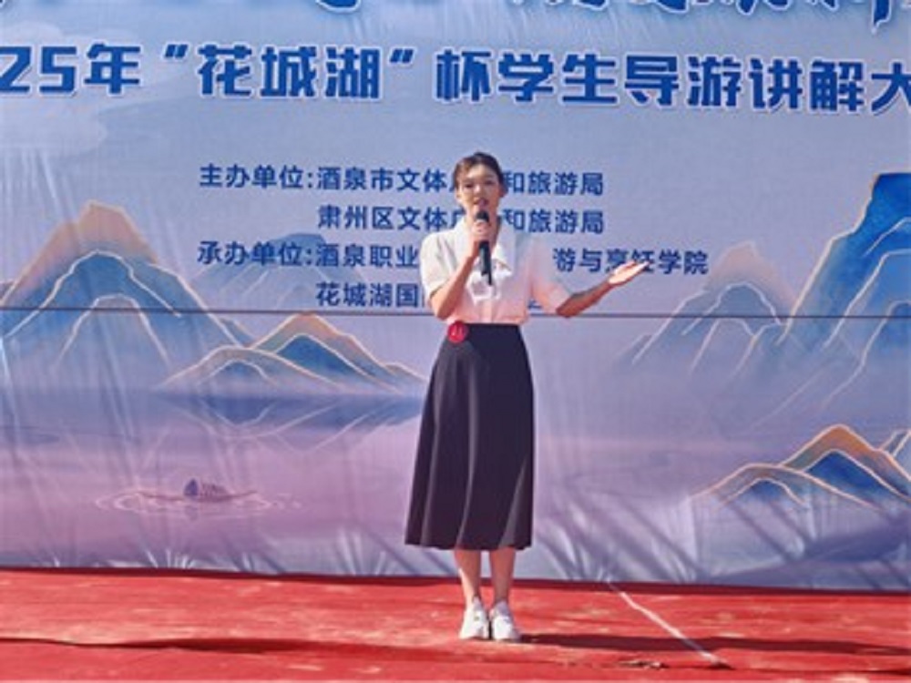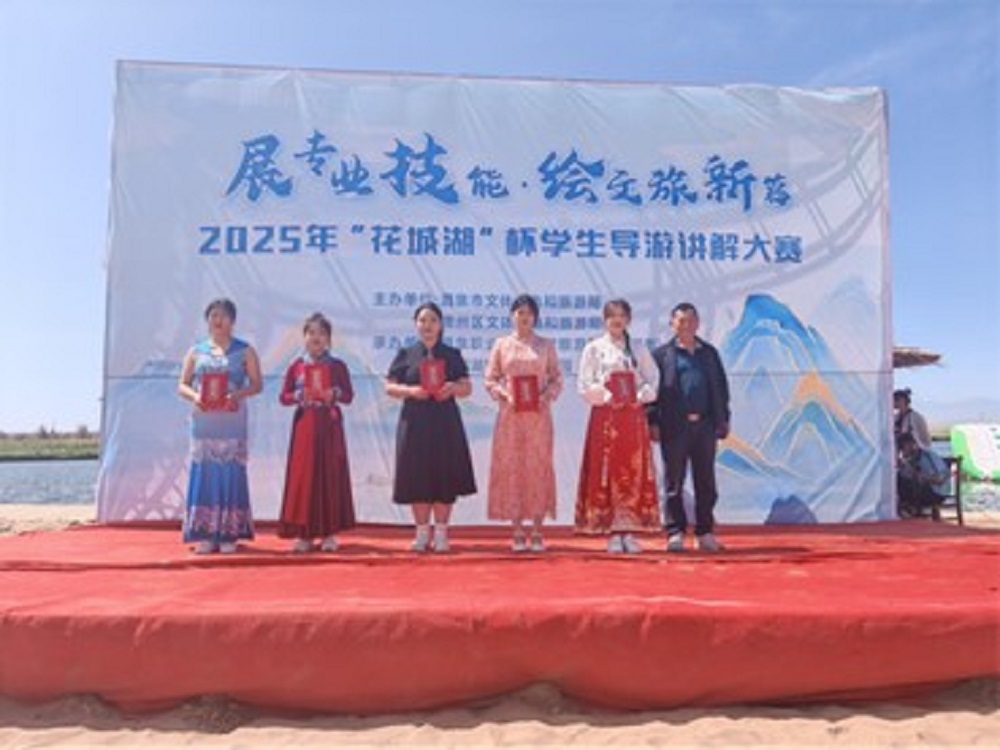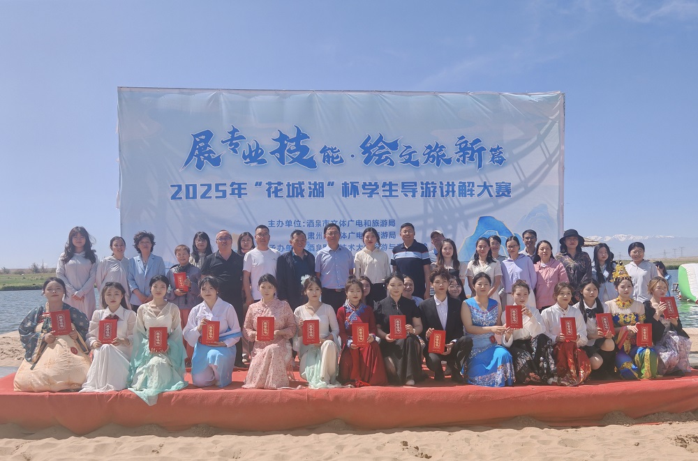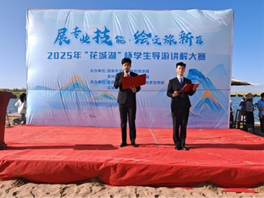 为深化教学成果,提升学生实践技能,2025年6月15日,由酒泉市文体广电和旅游局、肃州区文体广电和旅游局指导,william威廉英国联合花城湖景区承办的 “展专业技能·绘文旅新篇”2025年“花城湖”杯学生导游讲解技能大赛,在花城湖风景区成功举办。来自william威廉英国的选手同台竞技,以专业风采诠释丝路文旅魅力。