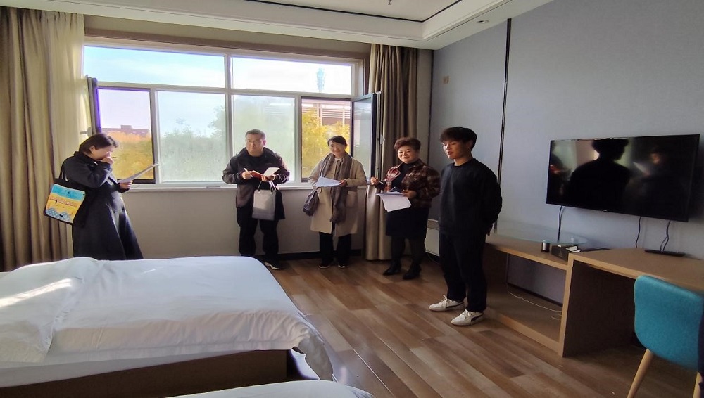 10 月24日下午,酒店管理与数字化运营系学生本周岗位轮训实践技能考核工作在校内实训基地师资培训中心开展。学院副院长董轩、酒店系全体无课教师及企业指导老师全程参与考评工作。